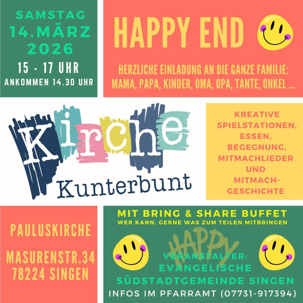 Herzliche Einladung an die ganze Familie zu unserer nächsten Kirche Kunterbunt.